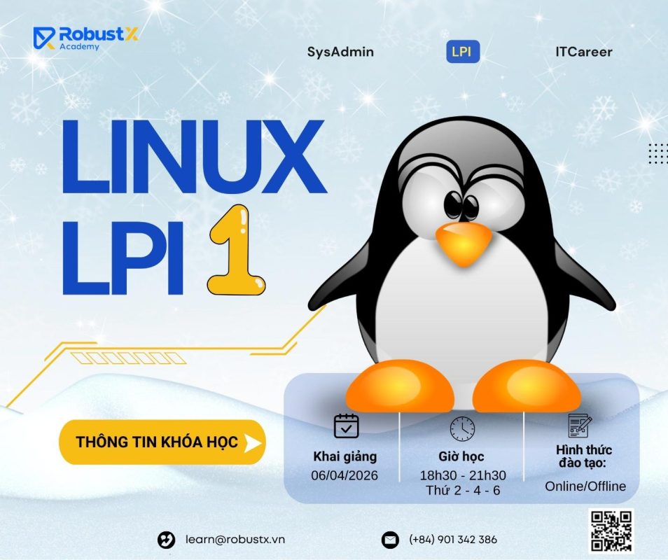 Đó chính là lý do khóa học Linux Professional Institute Certification Level 1 (LPIC-1) tại RobustX Academy được thiết kế. Khóa học giúp bạn hiểu sâu hệ điều hành Linux, làm chủ dòng lệnh và vận hành hệ thống thực tế, đồng thời chuẩn bị nền tảng để chinh phục chứng chỉ quốc tế LPIC-1 của Linux Professional Institute (LPI).