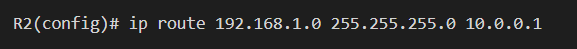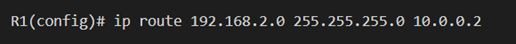 1. Bổ sung một tuyến đường tĩnh trên R2 để cho phép lưu lượng trả về mạng nguồn.