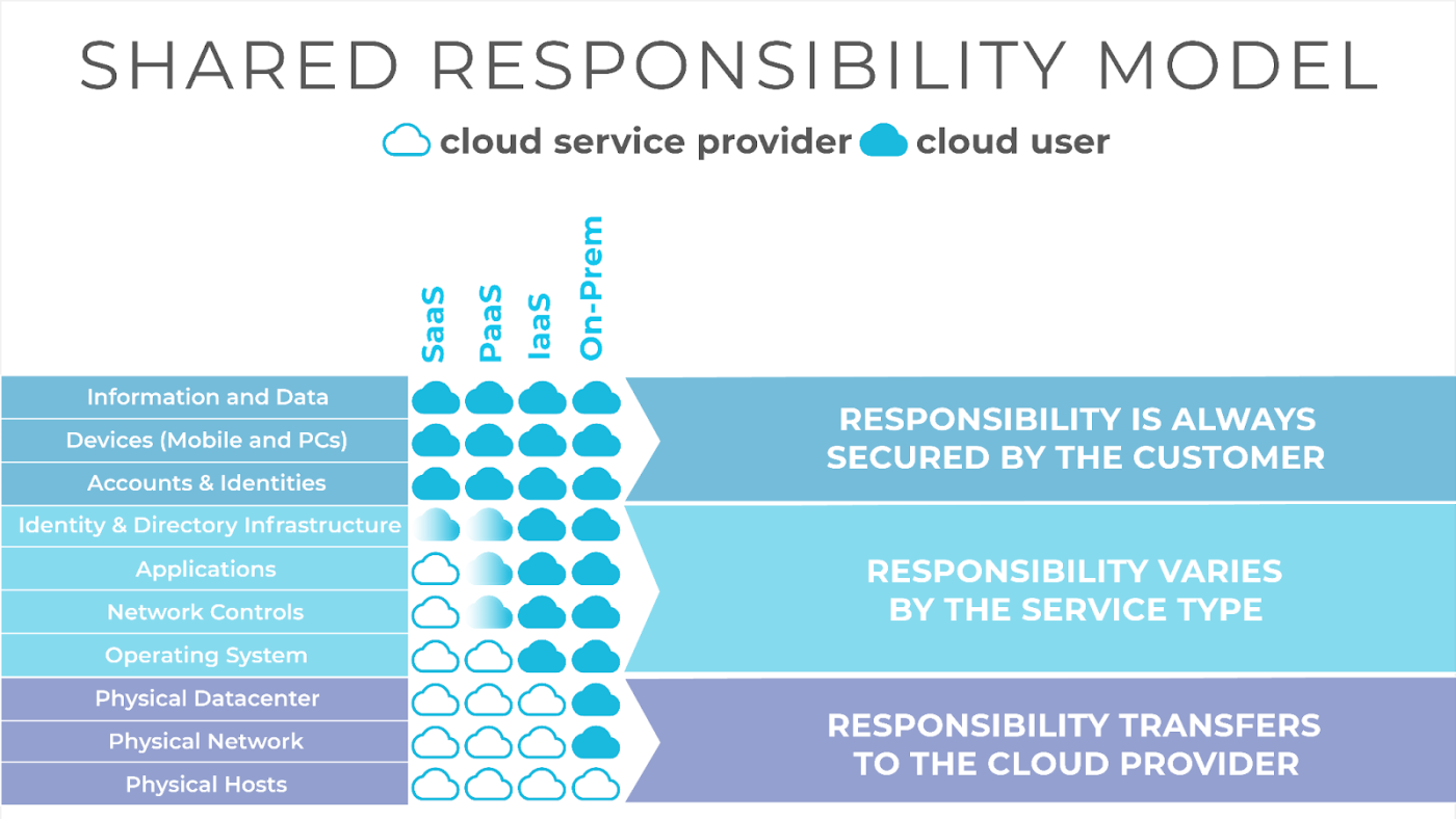 Tất cả nhà cung cấp dịch vụ cloud lớn như AWS, Azure và Google Cloud đều áp dụng mô hình Shared Responsibility, trong đó nhà cung cấp chịu trách nhiệm bảo mật phần hạ tầng vật lý, mạng lưới trung tâm dữ liệu và nền tảng dịch vụ. Tuy nhiên, người dùng chịu trách nhiệm bảo mật các tài nguyên họ triển khai, bao gồm quyền truy cập, mã hóa, cấu hình mạng, chính sách IAM, quản lý khóa và giám sát hệ thống.