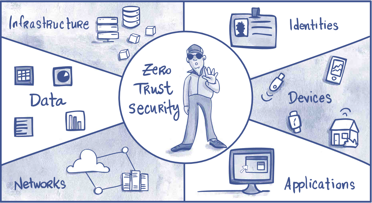 Để triển khai triết lý này một cách toàn diện, kiến trúc Zero Trust được xây dựng dựa trên sáu trụ cột cơ bản, đảm bảo mọi khía cạnh của hệ sinh thái CNTT đều được kiểm soát:
